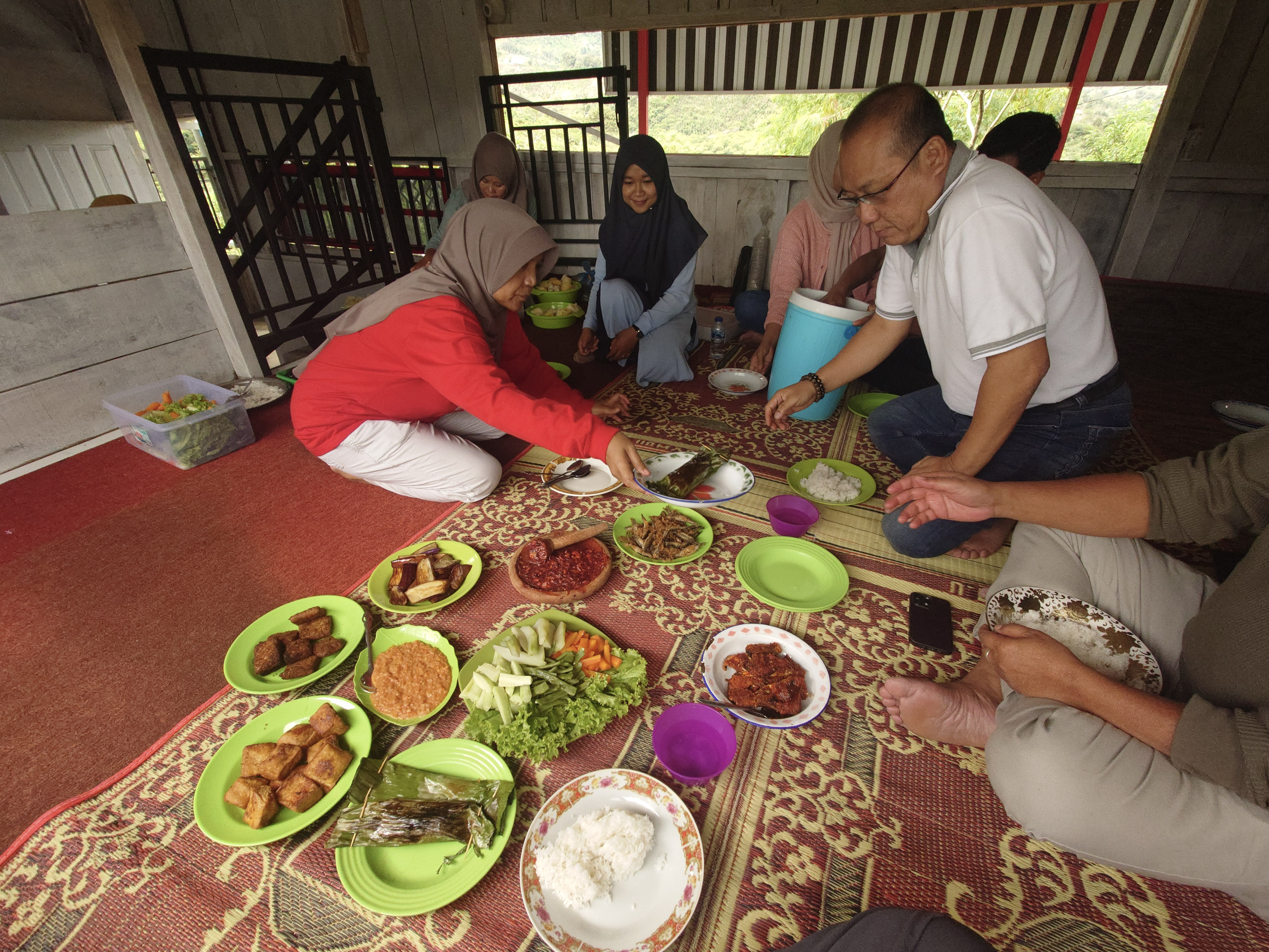 Upon returning to Ketiara, we realised we were running late for the day's activities. The cooperative was abuzz with energy as an inspector from Jakarta had arrived to evaluate their Fairtrade operations. These inspections occur several times a year to maintain their organic and Fairtrade certifications, crucial to their mission. Needless to say, they effortlessly passed the inspection! To give them space, we decided to visit some higher altitude coffee plantations around Takengon, treating ourselves to breathtaking views of the town. Our driver for the day, Agus, insisted on sharing some of the local food scene with us. We descended from the mountains to a charming fishing hamlet, indulging in grilled fish and what they call "lake lobsters" (giant crayfish).